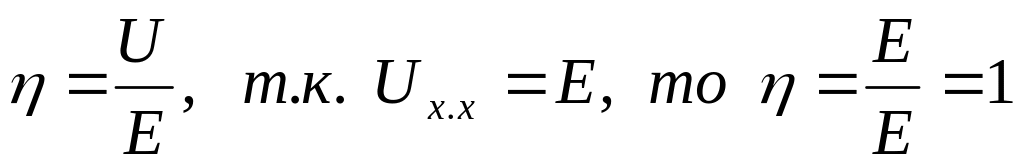 Режим электрической цепи, при котором сопротивление равно бесконечности, а значит ток равен нулю, называется режимом холостого хода. Этот случай соответствует размыканию цепи. При холостом ходе напряжение на зажимах источника равно его ЭДС, т. к.