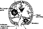 1 р а ч к и. При коме, вызванной очаговым поражением ЦНС, зрачки часто асимметричны. Одностороннее расширение зрачка (более 5 мм) с утратой реакции на свет часто свиде- юльствует о начинающемся вклинении крючка гиппокампа в вырезку намета мозжечка. Двустороннее расширение зрачков с отсутствием реакции на свет указывает на двустороннее поражение среднего мозга (обычно вследствие вклинения) либо па отравление холинолитиками.