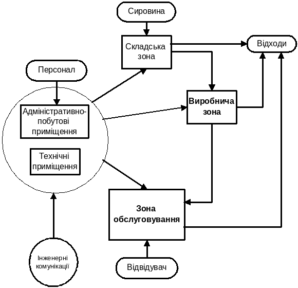 Загальна планувальна схема зонування ЗРГ у відповідності з виробничим процесом (приклад)
