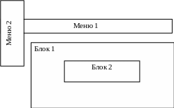 Меню1 двухуровневое, с вертикальным расположением категорий; списки выпадают справа и вниз;