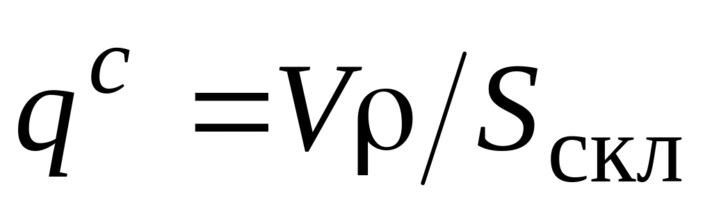 где – объем груза на складе, м3; – объемная масса груза (для наливных грузов – плотность), т/м3; – площадь склада, м2.