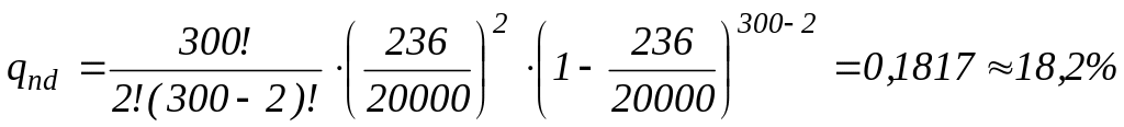 Біноміальний закон. Оскільки у нас n/N=300/20000=0,015<0,1, то для розв’язання задачі може бути використаний також біноміальний закон, за яким