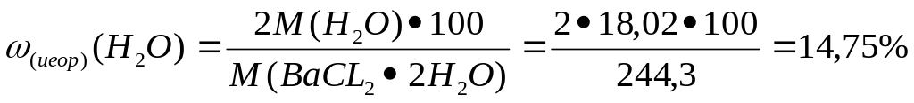 Сущность работы: Определение основано на разложении кристаллогидрата хлорида бария при нагревании при температуре 120-125 С с выделением воды: