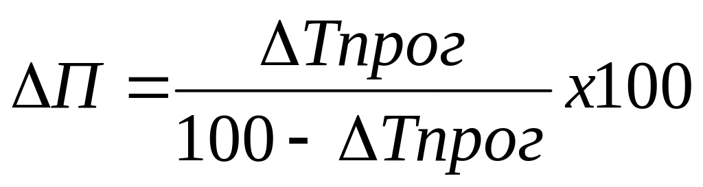 ∆П – можливий приріст або зниження продуктивності праці в плановому році, %.