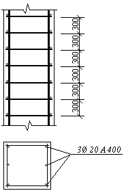 Коэффициент армирования μ = 8,04 / 900 = 0.0089, процент армирования - 100·μ= =100·0,0089 = 0,89 % < 3 %