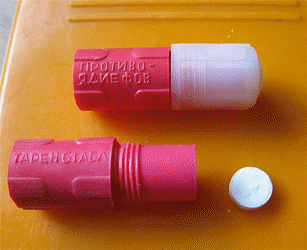 При поражении токсичным веществом нервно-паралитического действия необходимо как можно быстрее принять еще одну таблетку антидота или ввести внутримышечно атропин, который находится в аптечке АИ-1 или в санитарной сумке в шприц-тюбике.