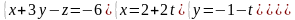 Пример 5. Запишем параметрические и канонические уравнения прямой, заданной общими уравнениями: