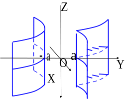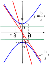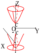 Это гипербола, лежащая в плоскости , с действительной полуосью и мнимой полуосью c, ветви которой направлены вдоль оси .