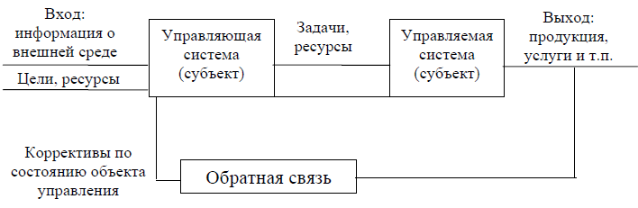 Организация как система управления – одно из ключевых понятий менеджмента, которое связано с: целями; функциями; процессом управления; квалификацией менеджеров; распределением полномочий для достижения определенных целей. В рамках этой системы протекает весь управленческий процесс, в котором участвуют менеджеры всех уровней, категорий и профессиональных специализаций. Организация построена для того, чтобы все происходящие в ней процессы осуществлялись своевременно и качественно. Управление – это процесс воздействия на систему с целью поддержания заданного положения или перевода ее в новое состояние (рис. 3). Любая система управления должна иметь четыре основных элемента: