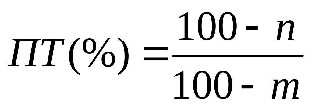 n и m – потери рабочего времени до и после внедрения организационно-технических мероприятий (ОТМ), %;