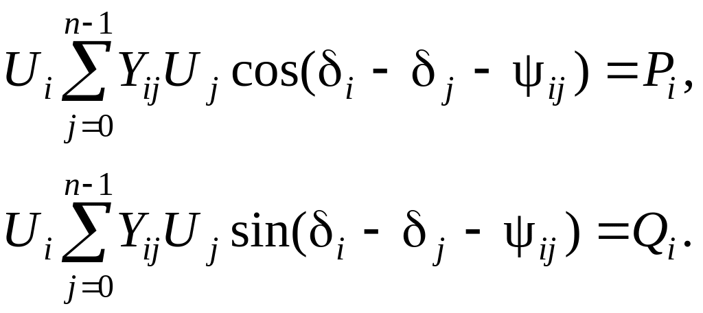 Тригонометрическая форма нелинейных уравнений установившегося режима может быть получена, если комплексные величины в уравнении (3.39) записать в виде: