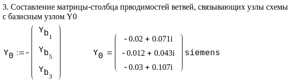 Пример. Рассчитать напряжения в узлах и токи в ветвях схемы электрической сети, граф которой изображен на рис. 3.7. Исходные данные для расчета и расчет представлен в системе Mathcad.