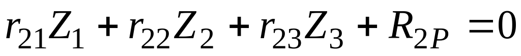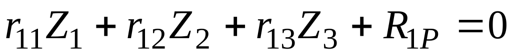 Для випадку трьох основних невідомих система розв’язувальних канонічних рівнянь методу переміщень має вигляд: