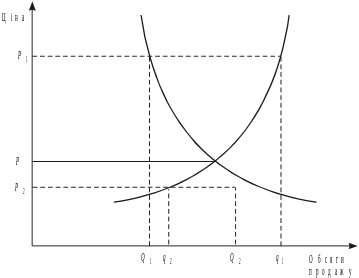 q1, q2 — обсяги пропонування, які відповідають цінам Р1 і Р2.