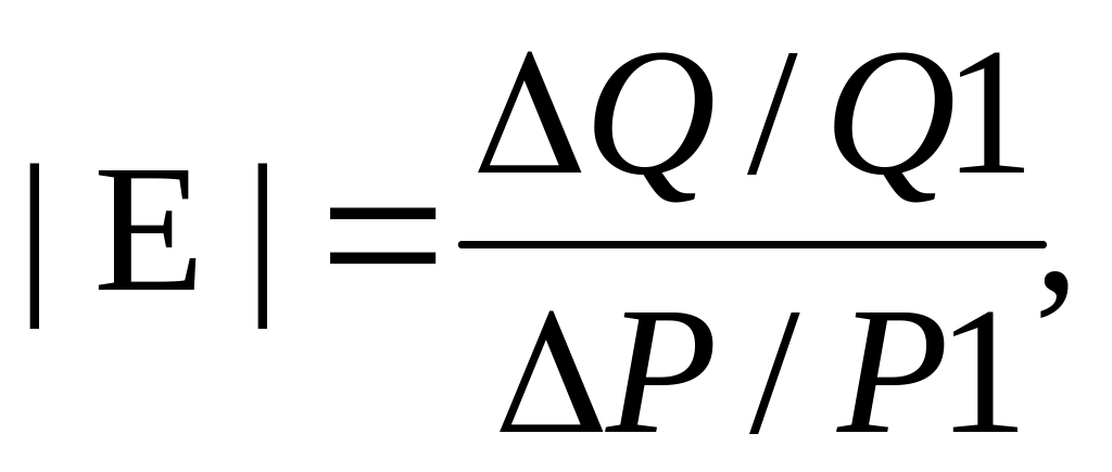 де E— коефіцієнт цінової еластичності; Р1 — початкова ціна; Q1— попит, який відповідає ціні Р1; Р — зміна ціни; Q— зміна попиту.
