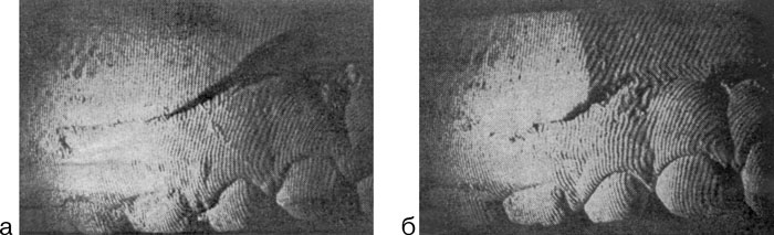 Рис. 4. Топографическая интерферограмма слепков челюстей, полученная до (а) и в процессе (б) ортодонтического лечения (по: Большаков О. П., Ильинская Т. А., Казак В.Ё., 1981).