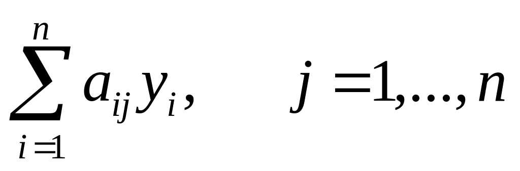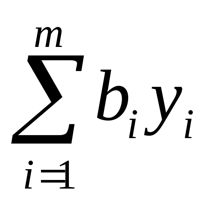 Возможна другая постановка задачи, которая представляет практический интерес, например ресурсы направить на продажу, а не на изготовление продукции. Нужно определить такую минимальную цену yi за единицу ресурса каждого вида, чтоб доход от реализации всех запасов ресурсов был бы не меньше дохода от реализации всей продукции, которая может быть изготовлена из этих ресурсов.