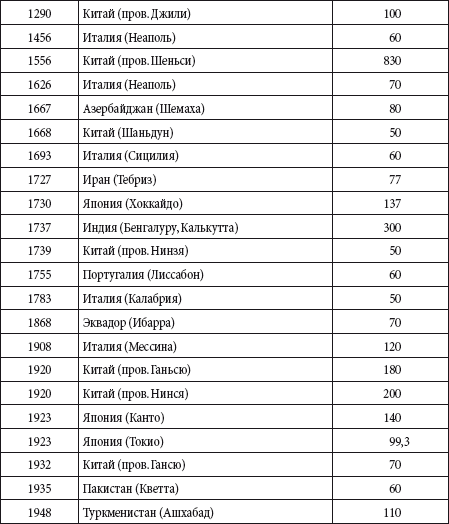 Распределение числа жертв по типам природных катастроф за 50‑летний период 1947–1997 гг