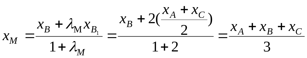 2. По свойству медианы │ВМ│:│МВ1│= 2:1. => λМ = 2. Используя соотношения (4), получаем: