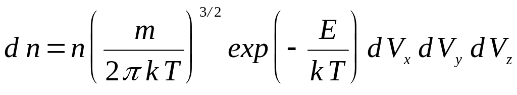 где dn – число свободных электронов в единице объема металла, имеющих скорости в интервале Vx Vx + d Vx , Vу Vу + d Vу , Vх Vх + d Vх, n – концентрация свободных электронов, E – энергия электрона, k – постоянная Больцмана, m – масса электрона, T – абсолютная температура.