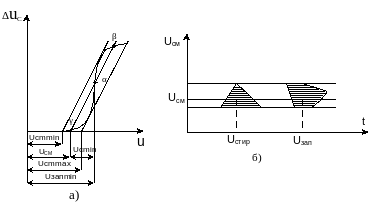 Оптимальная частота поддерживающего напряжения лежит в диапазоне 40-50кГц. Выбор Uсм, Uзап и Uсmиp производится по перезарядной и динамической характеристикам ГИП переменного тока [1], представленных на рис.5.9а,б соответственно. Перезарядная характеристика позволяет определить изменение напряжения на емкостях ячеек ГИП в результате протекания импульса разрядного тока: