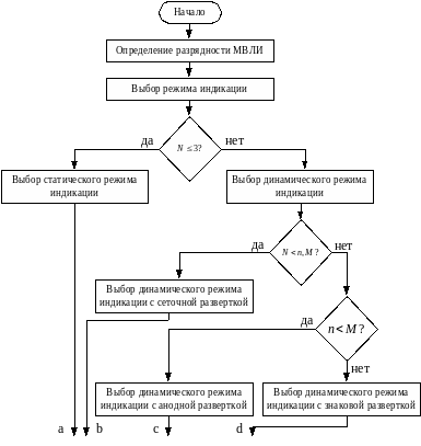Методику в виде алгоритма можно представить рис.2.9. Алгоритм служит иллюстрацией основных этапов проектирования систем управления индикацией МВЛИ. Методика может быть использована при проектировании систем управления для отображения информации на основе других многоразрядных индикаторов, например на основе многоразрядных ЖКИ.