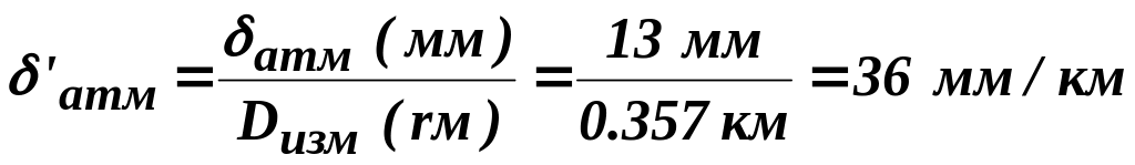 Если теперь для каких-то конкретных атмосферных условий известно значение поправки , например, 23 мм/км, то формулы (15) и (16) можно переписать как