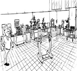 Оснащение цеха рабочими и измерительными приборами требует наличия соответствующей подсобной площади для стационарных и передвижных установок. Хорошо оснащенный цех требует наличия подсобной площади в размере примерно 10–20 % от общей площади цеха.