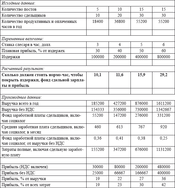 Чаще всего стоимость нормо‑часа устанавливают на уровне ставок конкурентов с учетом собственных преимуществ или недостатков. На основе выбранного значения стоимости нормо‑часа обсчитывают ожидаемые доходы и расходы, проверяя достижение рентабельности и требуемой степени прибыльности. Если при возможной на данном рынке стоимости нормо‑часа рентабельная работа не ожидается, ищут способы сокращения затрат и увеличения количества заказов.