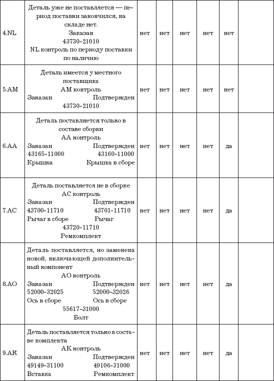 Выверка номеров деталей. До обработки “первичного заказа для складского запаса” Компания выверяет и корректирует номера заказанных запчастей, чтобы обеспечить поставку правильных деталей. Учитывая частые конструктивные изменения деталей в период освоения новых моделей машин, процесс выверки номеров деталей очень важен. Результаты выверки номеров деталей будут сообщены дилеру в “счете – проформе” или в “подтверждении заказа”. В связи с изложенным соблюдайте следующие инструкции: