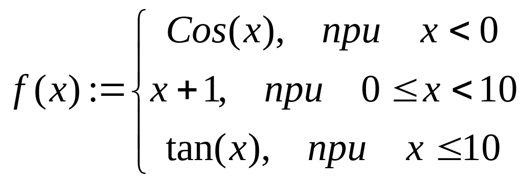 f(x):=(x<0) cos(x)+(x>0) (x<10) (x+1)+(x>10) tan(x).