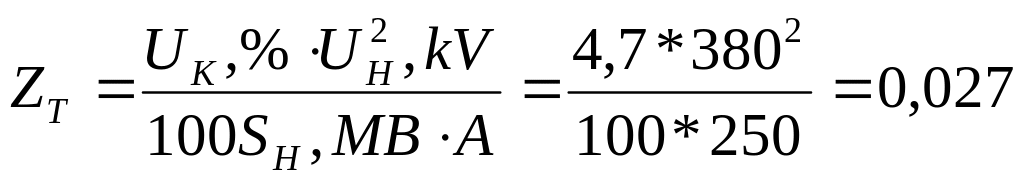 Полное сопротивление трансформатора определим по формуле