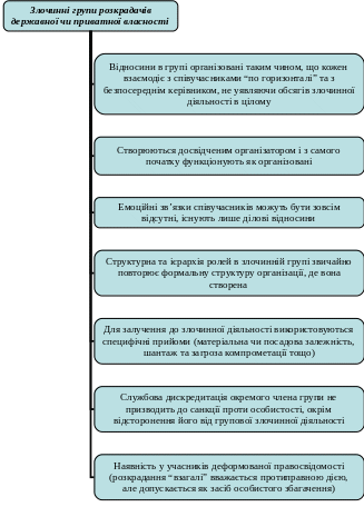 Організована злочинність – це відносно масова група стійких і керованих співтовариств злочинців, що займаються злочинною діяльністю як промислом, вчиняють великомасштабні розкрадання державної і суспільної власності, створюючи для цього систему захисту від соціального контролю з використанням таких протизаконних засобів, як корупція, залякування, насильство та ін.