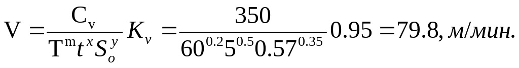 Расчёт скорости резания выполним по справочнику [2, стр. 363], используя эмпирическую формулу: