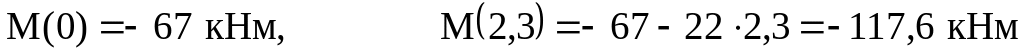 Полученный результат свидетельствует, что эпюра изгибающих моментов на этом участке является прямой линией, поэтому вычисления проведём в двух точках.