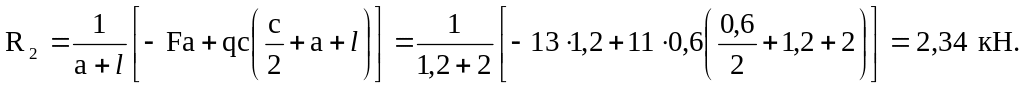 Опорную реакцию R1 найдём из второго уравнения равновесия