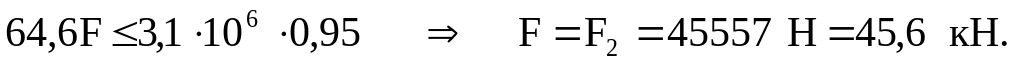 Условие прочности по растягивающим напряжениям (1) даёт значение силы