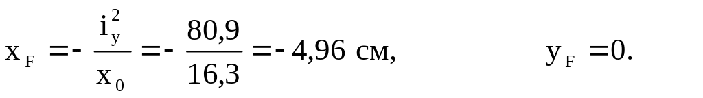 Поскольку центр тяжести сечения лежит на оси х-ов, нет необходимости в отыскании его координаты yС. Для вычисления второй координаты xC проведём вспомогательную ось y0.