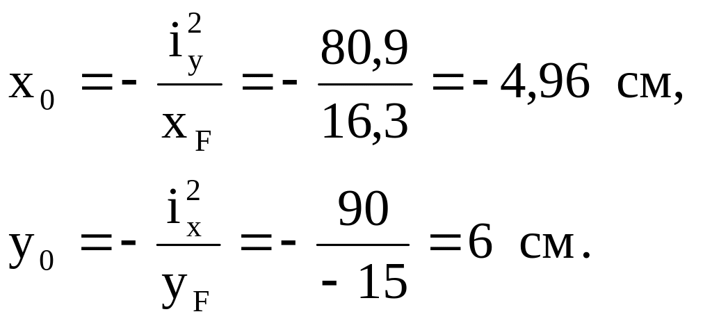 По этим значениям на рис. 2 намечаем точку С и через неё проводим центральную ось у. Ввиду того, что ось х-ов является осью симметрии, оси х, у являются главными осями инерции.