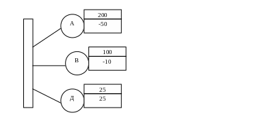 ЕМV (А) = 200 * 0,4 + (-50) * 0,6 = 80 + (-30) = 50