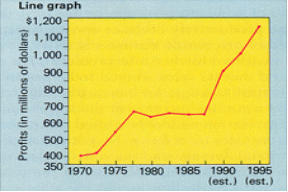 The results of most research efforts can only be made useful by submitting the findings to statistical analysis. Statistics makes any kind of numerical data useful and meaningful. Several types of diagrams are used to display relationships among data (see Fig.1). A line graph is a line connecting points. Single line graphs are used to show trends, to give information about one item. Amounts are given on the vertical axis and time on the horizontal axis. A bar chart uses either vertical or horizontal bars to compare information. Because of its simplicity, the bar chart is frequently used in business reports. A pie chart is a circle divided into slices. The slices are labeled as percentages of the whole circle, or 100 percent. A pie chart provides a vivid picture of relationships, but it is not good for showing precise data. A table is grid of words and numbers commonly used to present data when there is a large amount of precise numerical information to convey.