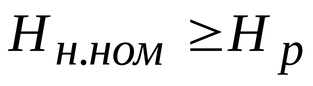 де Qн.ном.  подача насоса, м3/с; Нн.ном.  висота підйому води (напір), м; r  густина води, кг/м3, r = 1000; g  прискорення вільного падіня, м/с2; ηн.ном  коефіцієнт корисної дії насоса.