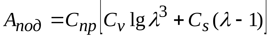 CS коефіцієнт, що характеризує роботу, затрачувану на створення нових поверхонь при подрібненні 1 кг матеріалу, кДж/кг; Cν коефіцієнт, що характеризує роботу пружних деформацій матеріалу при вибраному методі механічного навантаження, кДж/кг; λ ступінь подрібнення матеріалу.