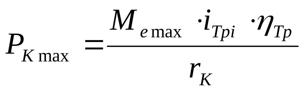 Теоретичний розрахунок і графічну побудову теоретичної тягове характеристики трактора виконують у такій послідовності: на аркуш; міліметрового або креслярського паперу наносять на нижній його частині вісі координат з повернутою віссю ординат вниз. Потім по вісі абсцис від початку координат О1 у прийнятому масштабі відкладають для кожної передачі максимальну дотичну силу тяги, що підрахована за формулою: