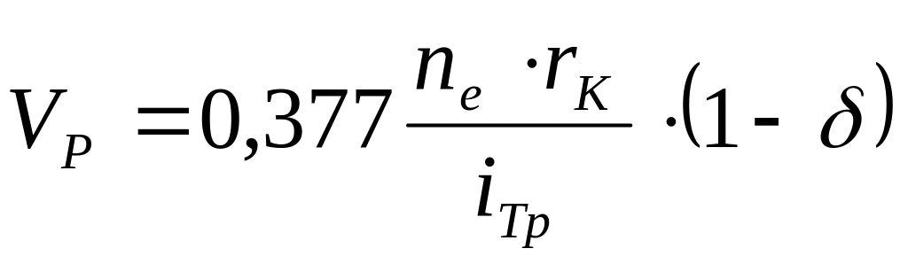 Знаючи величину буксування і частоту обертання колінчастого вала, підраховують для кожної передачі робочі швидкості руху за формулою: