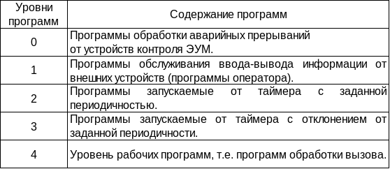 Все программы делятся на группы – уровни по приоритетности. Программы каждого уровня по отношению друг к другу имеют абсолютную приоритетность. Программы внутри каждого уровня имеют относительную приоритетность.