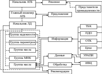 Рис.70. Типовая структура лаборатории диагностики и взаимодействия ее с другими подразделениями эксплуатационного предприятия