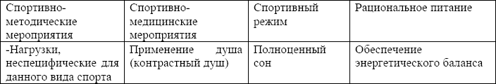 Мероприятия, способствующие ускоренному восстановлению спортсменов (по Ю. Хартману и X. Тюннеманну (1988)