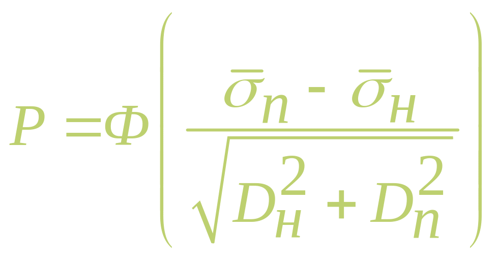Подставляя функции распределения в соотношения композизии двух законов распределения и вероятность неразрушения и выполняя интегрирование, получим: