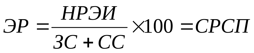 Итак, пороговому значению НРЭИ соответствует пороговая (критическая) средняя расчетная ставка процента, совпадающая с уровнем экономической рентабельности активов.
